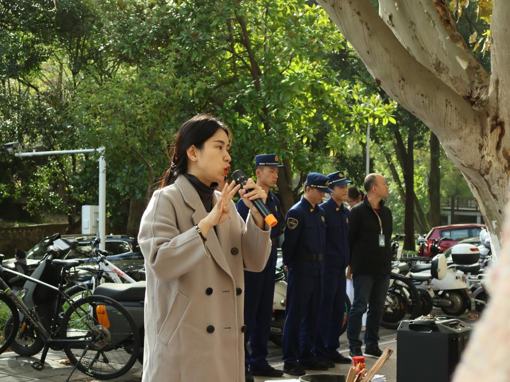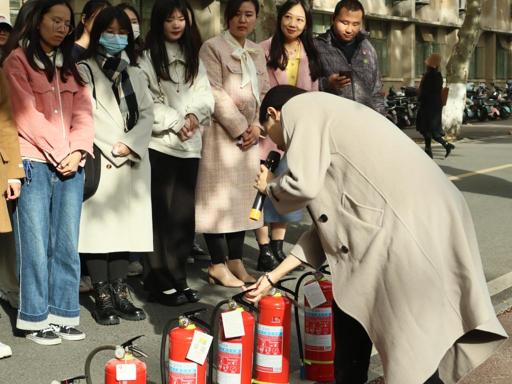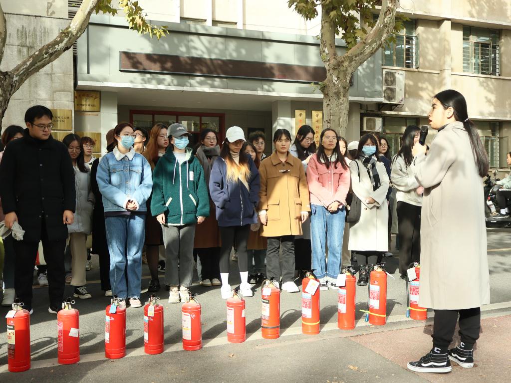接下来,保卫处陈嘉璇老师向大家科普消防安全知识。她向同学们介绍了几起惨痛的消防事故案例,强调掌握消防知识与逃生技巧的必要性。她以手中的灭火器为例,为大家详细讲解了灭火器的使用方法以及注意事项,提醒大家注意检查灭火器的有效期和压力情况,并要牢记“一抽、二压、三对准”的使用口诀。