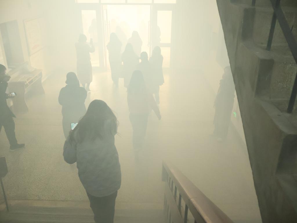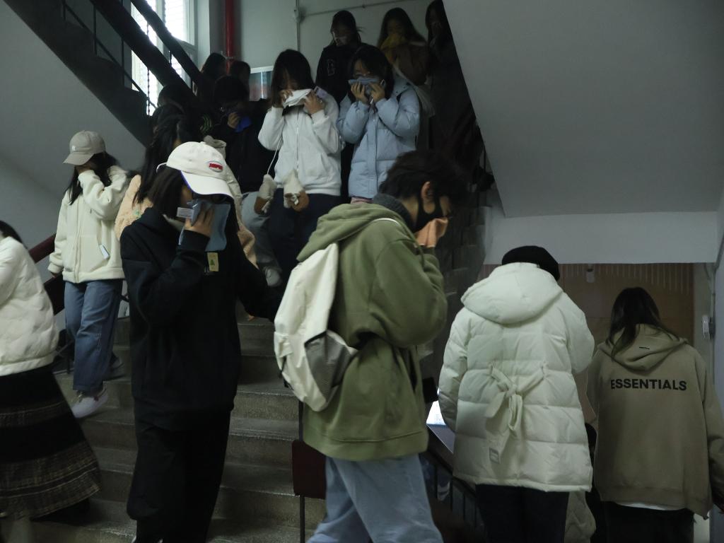 随后,在工作人员的带领下,三院师生前往东七楼楼内,开展消防逃生演习。随着警报声响起和烟雾的弥漫,全体师生用湿毛巾捂住口鼻,并在工作人员的指挥下迅速逃往东七楼外。本次逃生演习通过模拟真实的火灾现场,使得每位同学将消防逃生知识铭记于心。
