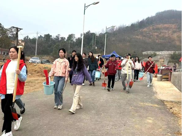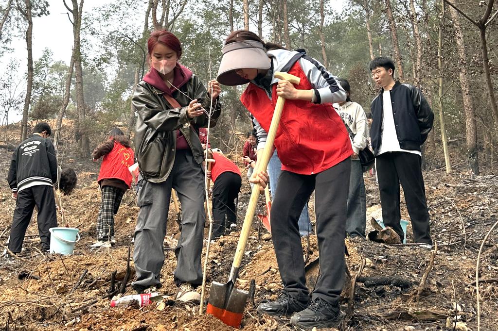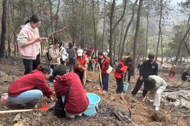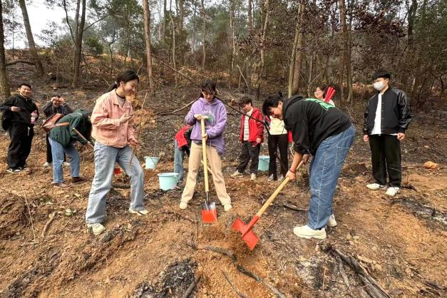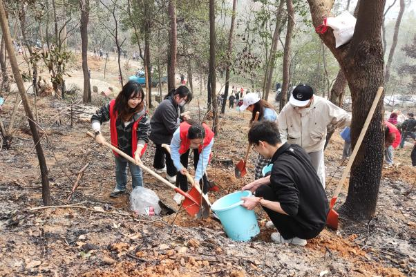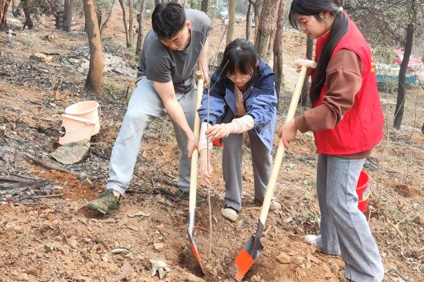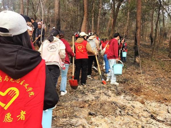 阳春三月万物苏,植树添绿正当时。为深入学习领会习近平总书记关于生态文明建设的最新思想和成果,帮助青年学子更好地了解美丽中国目标,深化对党的生态文明建设的规律性认识,营造增绿、护绿、爱绿的浓厚氛围,在第46个全国植树节到来之际,WilliamHill威廉希尔研究生会志愿者工作部于3月16日组织40余名同学前往武汉市蔡甸区嵩阳林场开展义务植树活动。学院兼职辅导员、德育助理及各党团支部书记积极响应,与志愿者们携手种下希望之树,为生态文明建设贡献青春力量。
