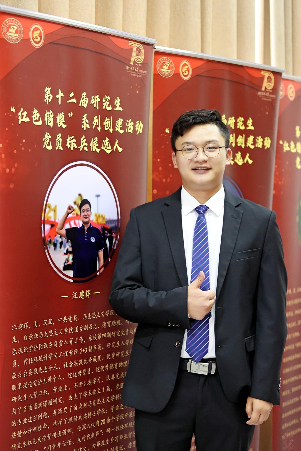 2022级博士生汪建辉,曾获中国大学生自强之星、校优秀共产党员、研究生党员标兵、优秀研究生干部荣誉称号。“做一名马克思主义者,让信仰成为一种力量。”是汪建辉的座右铭,他矢志做马克思主义的实践者和传播者,始终致力于“用青年话语,发时代新声”,个人累计开展基层理论宣讲200余场,带领团队打造高质量课程60余门,让党旗在学生群体中高高飘扬;他热心学生工作和社会公益,在服务集体和社会发展中彰显青春价值,努力用脚步丈量祖国大地,把实践问题熔铸于学术研究中,以实践砥砺奋斗青春。