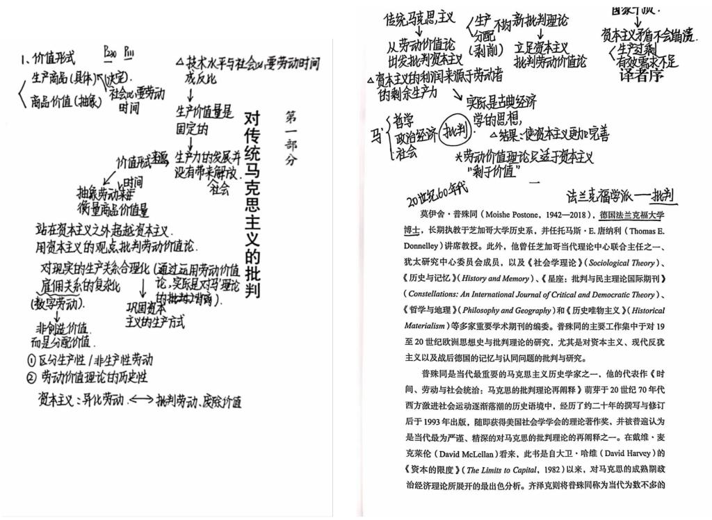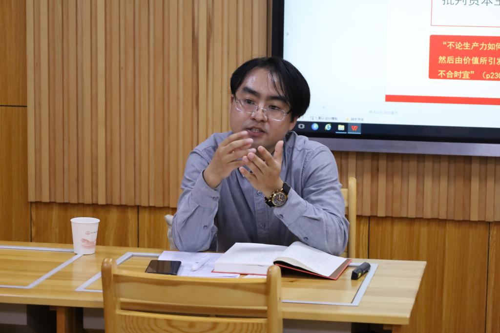 在悦读会的开始,蔡超老师简要介绍了《时间、劳动与社会统治:马克思的批判理论再阐释》的历史背景,指出莫伊舍·普殊同的思想主要受到马尔库塞和卢卡奇的影响,在法兰克福学派的指导下形成了自己关于资本主义社会的新思路,并特别指出法兰克福学派在西方马克思主义的批判理论方面具有重要的地位。蔡超老师在讲解中对比了传统马克思主义与普殊同及其他西方马克思主义者的观点差异,通过比较不同的理论视角,引导同学们区分不同学者的主要论点。