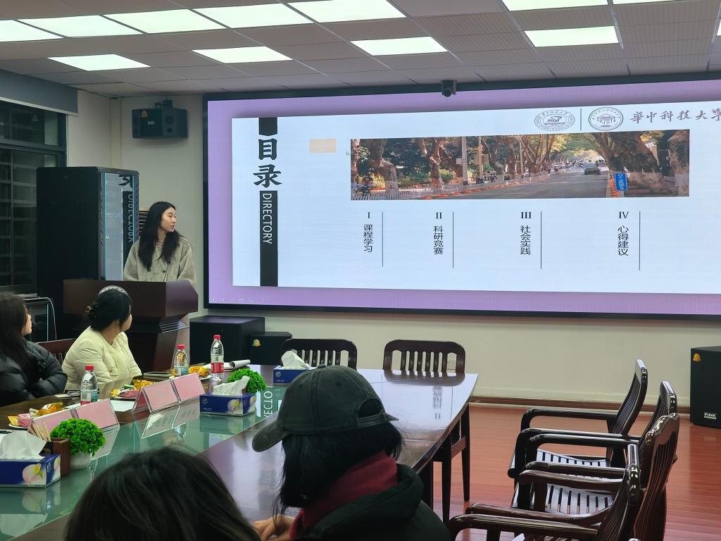会议伊始,国家奖学金获得者、支部成员陈辰羽同志就自己的成长经验进行了分享。她结合自己的亲身经历,从课程学习、科研竞赛、社会实践、心得体会四个方面倾囊相授,内容深刻、建议中肯,给支部成员以很大启发。