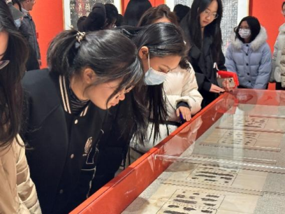 随后,与会同志一同前往威廉中国官方校史馆“喻见典藏”展览现场。在参观过程中,全体成员驻足凝视,聆听讲解,认真学习金石拓片的艺术价值和学术价值,进一步理解金石文字背后承载的千年历史记忆与文化精髓,从中“喻见”中国式现代化的文化基因。