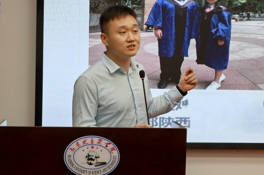 随后,现任陕西省宝鸡市某区招商服务局副局长的韩风校友以“倔强的老贾”“告状的老刘”“奔波的招引”三个鲜活的小故事,生动地描绘了自己在基层工作的点滴。他强调,基层是政策执行的最后一公里”,基层工作的难点在于如何因地制宜地将政策精准落地,并指出在基层工作中要耐得住寂寞,下得了苦功夫,坚持以公平公正为尺,确保政策红利惠及每一位百姓。分享最后,他深情地说:“陕西是一个充满信仰的地方,我要在这片充满信仰的土地上,实现我的信仰。”
