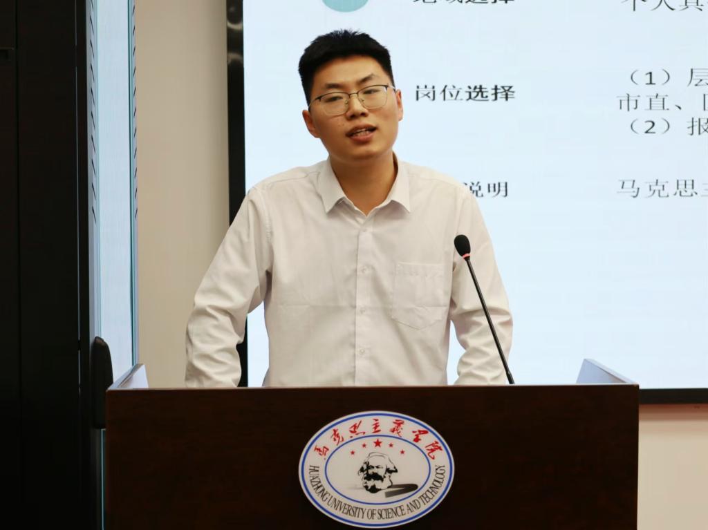 活动伊始,王明飞向两位校友的到来表达了热烈的欢迎,并指出选调生是马院学生重要就业去向,本次分享会对学生成长和学院发展均具有重要意义。他殷切期望与会同学以本次分享会为契机,深化对国家选调生政策的理解,合理规划研究生期间的学习与发展蓝图,并勉励大家以梦想为帆,以奋斗为桨,心怀国家,脚踏实地,书写无悔的青春篇章,争做新时代新青年。