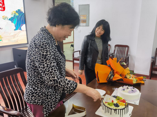 随后,为了表达对离退休教师们的殷切关心,学院还为70、80、90周岁教师过集体生日,并且送上了蛋糕和鲜花,气氛愉快且热烈。老同志们纷纷表示感谢学院在本次活动中周到细致的安排,表示这次活动给他们带来了温暖与感动。