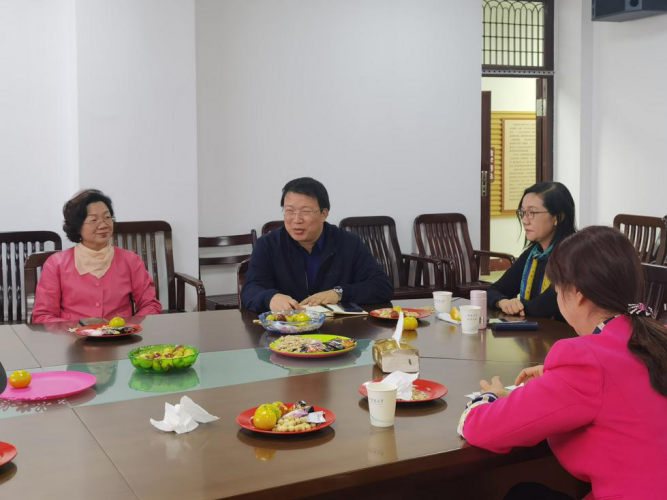 董慧主席送上了真诚的祝福,希望各位离退休教师能够健健康康、快快乐乐的过好每一天,王明飞副书记表态会将各位前辈们放在心上,并认真为他们做好服务。