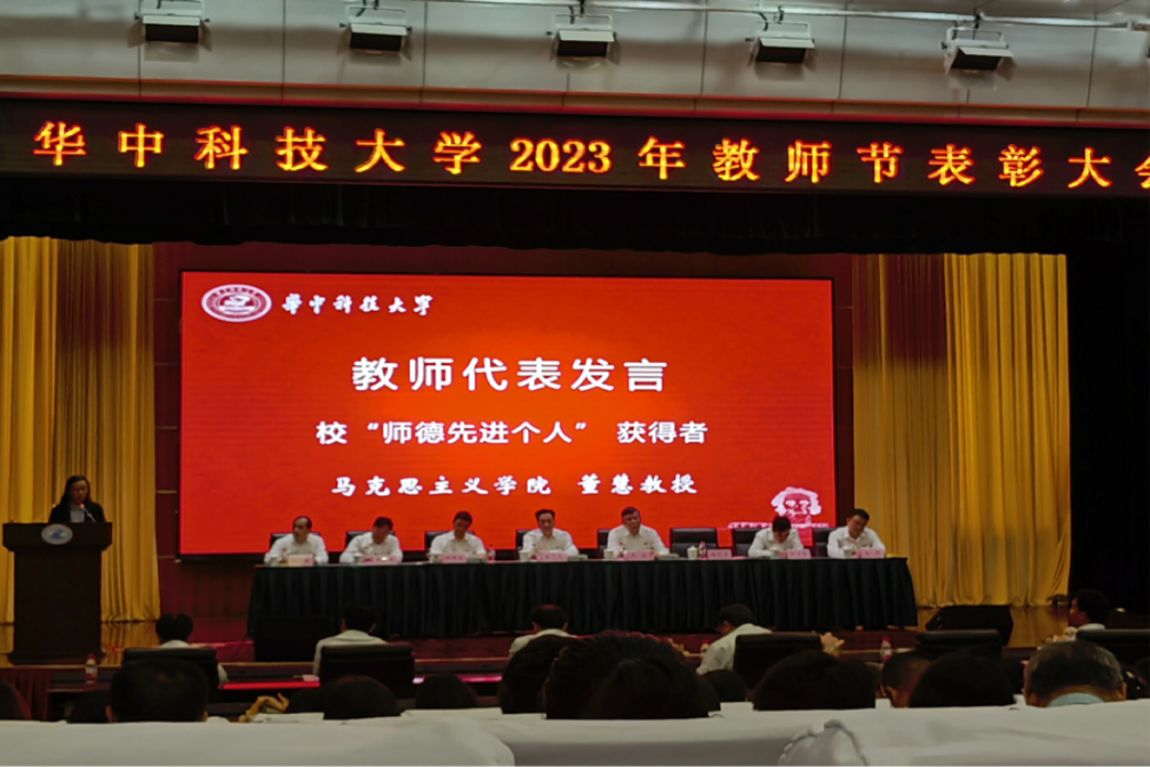 (通讯员:刘长夏)躬耕教坛勤奉献,强国有我勇担当。9月8日,在第39个教师节来临之际,学校举行教师节表彰大会,表彰一批在教书育人、立德树人方面取得突出成绩的优秀教职工。我院董慧教授荣获校“师德先进个人”。