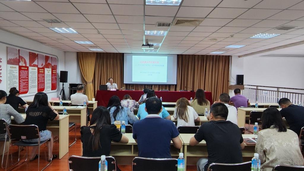 我院副教授吕洪良为经开区现代服务业产业园区班子成员和管理团队作题为《以党建促高质量发展——学习习近平总书记一系列最新论述》的辅导报告,重点围绕“党的二十大吹响高质量发展号角”“习近平总书记关于高质量发展的一系列最新论述”“以主题教育促党建走深走实”三方面进行讲授,并就如何具体开展好本次主题教育活动、如何结合主题教育推动园区高质量发展提出了建议。