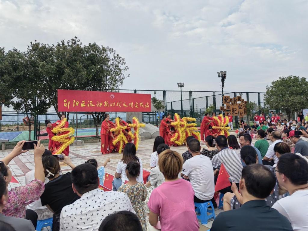 活动伊始,一首《没有共产党就没有新中国》的全体大合唱调动了全场氛围,随后展开的歌舞表演《祖国你好》《最美的歌儿唱给妈妈》《新龙船调》《向阳花开》等让观众们沉浸其中,三句半形式的《反诈骗宣讲进乡村》科普了电信诈骗知识,还有《习近平文化思想微宣讲》《党的二十大精神书记谈》等活动传播党的声音、传递党的温暖。除了丰富精彩的节目表演,现场还提供爱心义剪、爱心义诊、法治宣讲、农技服务、环保安全知识宣讲、征兵及就业宣传等志愿服务,为茶店镇人民群众带来了一场有声有色的文化大餐。
