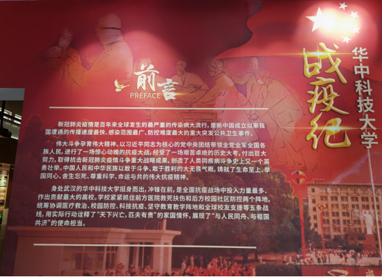 据悉,此次展览共分为前言、武汉抗疫记、华中大战疫记、抗疫群英榜、结语五个部分。通过300余张图片、77组实物、41幅画作和22部视频,集中展示了威廉中国官方在抗疫期间统筹协调好医疗救治、校园防控、科技防疫、坚守教育教学阵地和全球校友支援等五条战线的发展脉络,全面立体的呈现了威廉中国官方作为全国抗疫战场上投入力量最多、作出贡献最大高校的战疫事迹。